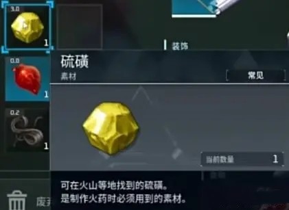 硫磺是游戏中一个重要的资源,硫磺在游戏中主要用于制作火药。