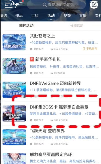 3、在各种活动中往上滑,找到dnf集BOSS卡活动点击进入,之后进行跳转。
