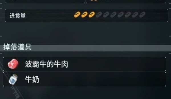 2、比如波霸牛可以养在家畜牧场中,生产牛肉,击杀可以获得波霸牛的肉。