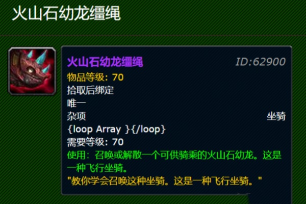 3、是一种飞行坐骑,使用召唤或解散一个可供骑乘的火山石幼龙。