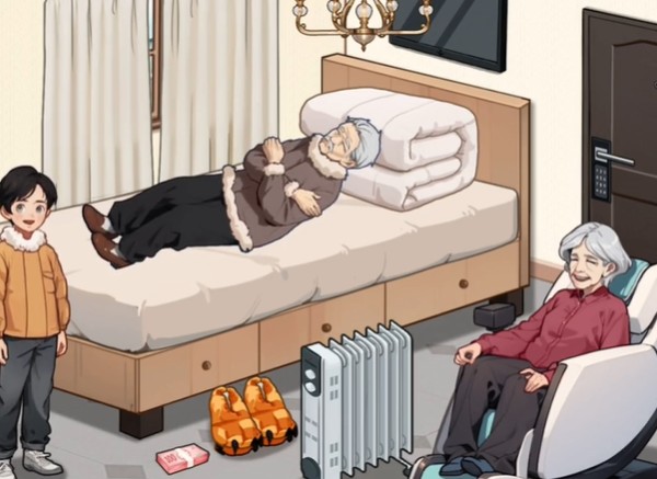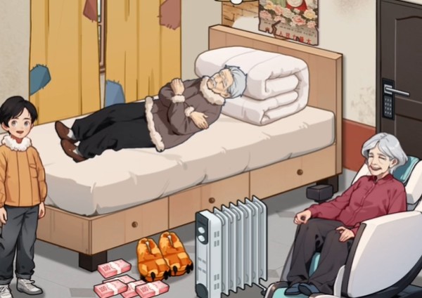 1、首先把钱推给床上发抖的老爷爷,让他穿上棉衣。