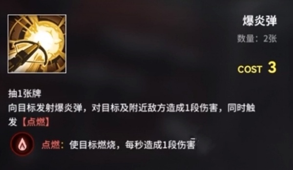 二技能:对单体敌人进行攻击,施加点燃效果并造成持续性灼烧伤害。