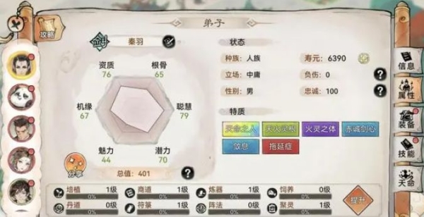 2、还会携带三张敛息符,游戏开始,会出现长老探查,我们需要避过探查。