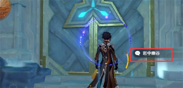 5、进入洞口就能找到岩中幽谷的大门位置了,点击消息图标就可以开启。