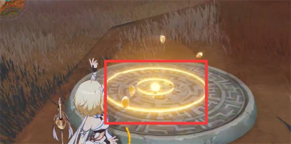 3、等待一会儿,就可以将机关打开,出现风场后需要使用岩角色技能攻击吹飞的石头。