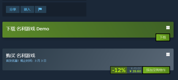 名利游戏demo里面玩家只能体验游戏中的一段剧情,名利游戏里是完整版游戏,可以体验游戏的全部剧情,玩家可以在demo中先体验一下游戏的玩法了解大致的操作和画面,一般游戏还没制作完成时游戏厂商会放出demo。