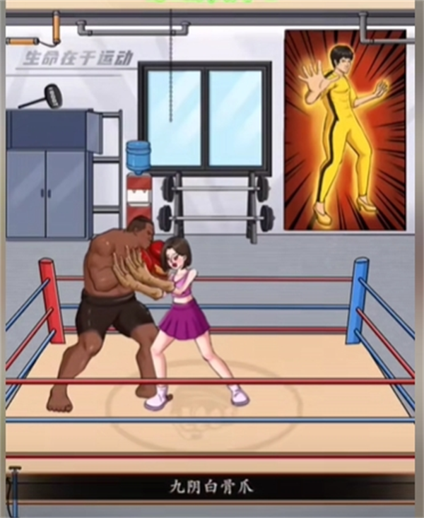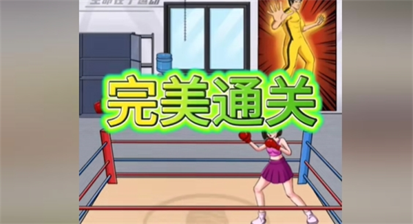 通关条件:拖动画面道具,帮助女生击败拳王。