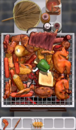 1、抓大鹅游戏烧烤篇中第一关我们直接点击烤串和玉米给全部消除。
