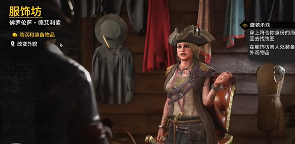 2、在场景中找到服饰商人,选择一件符合海盗身份的服装点击购买。