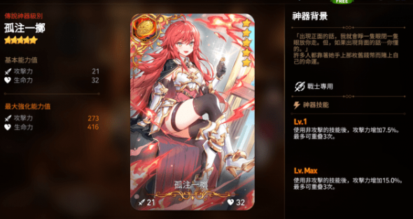 第七史诗游戏中孤注一掷是一个强大的五星神器,具有非常强的实力,但是需要搭配最合适的角色才可以发挥最强实力,今天小编就为大家推荐一个最适合搭配孤注一掷的角色。