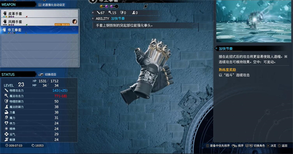 4、武器技能加快节奏,手套的突起部位可以强化拳头,是蒂法的专属武器。