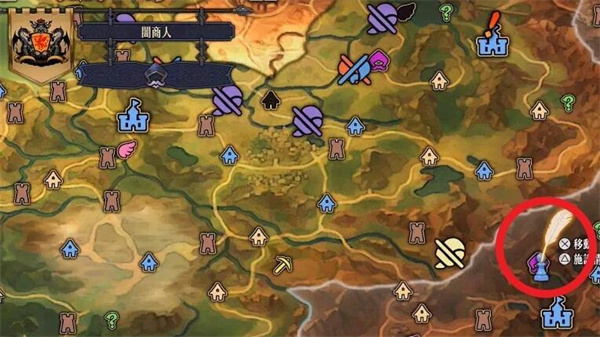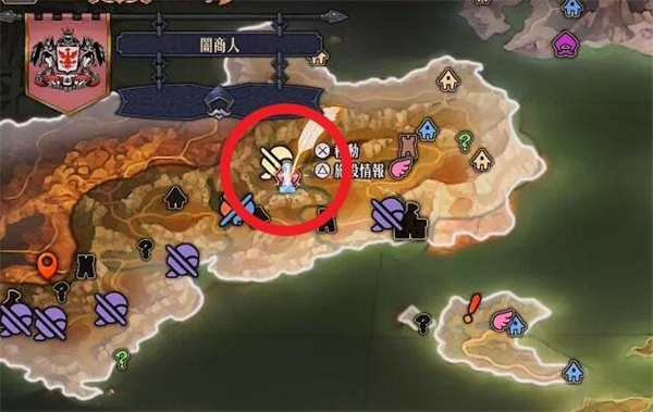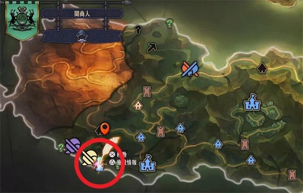 3、艾尔海姆,商人的位置在左下角红圈点,可以获取重要加成道具装备和室友等物品。