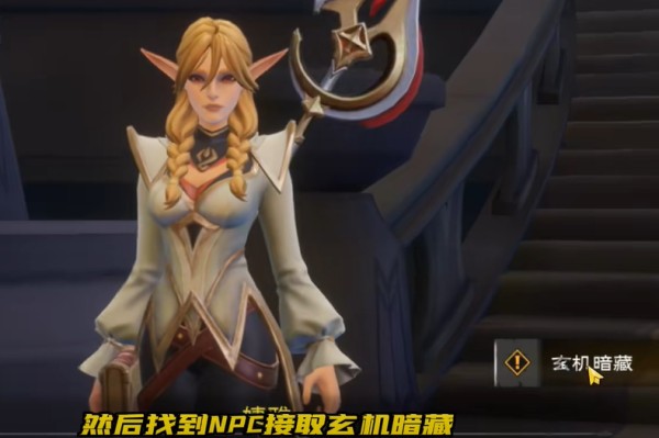 1、进入图书馆之后,先点亮三个小点,然后寻找指定的NPC接取玄机暗藏。