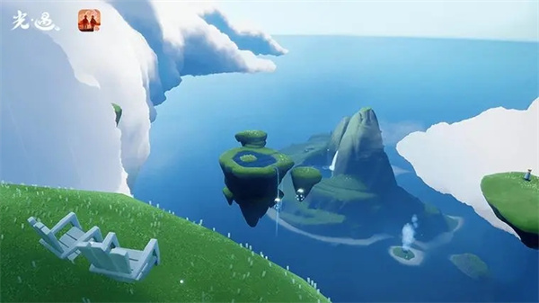 2、飞往右侧的浮岛就可以找到圣岛,再进入隐藏图,找到被污染的喷泉。