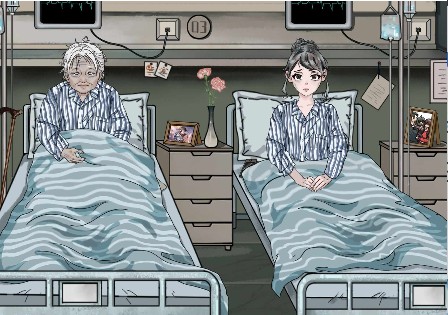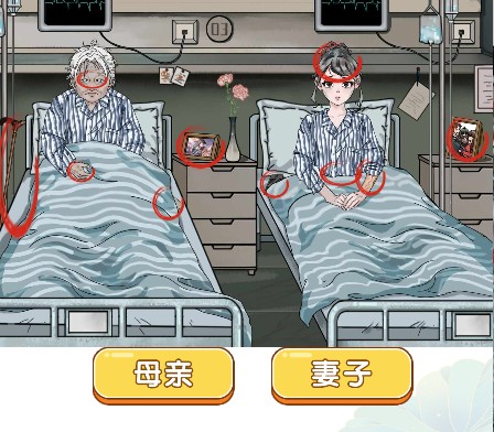 场景中左边病床上的是妈妈右边的是妻子,需要根据线索选择把肾源给谁。