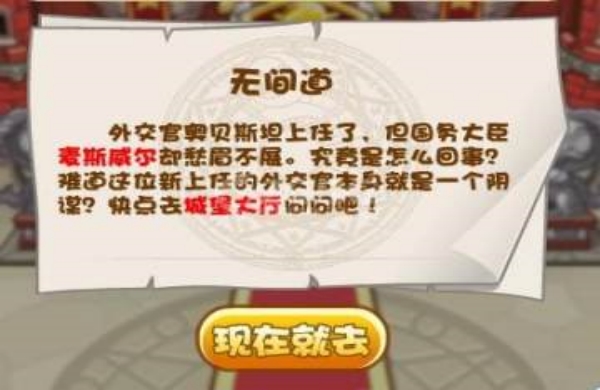 1、先查看到任务,根据任务的提示线索到城堡的大厅。