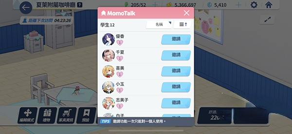 每天还会随机几个角色入驻咖啡厅中,我们可以赠送礼物然后来提高好感度。