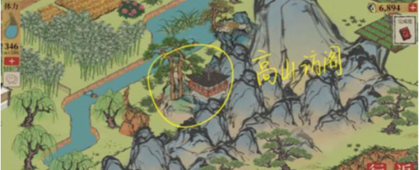 4、地图上的高山下面有一个单独的小阁楼,阁楼里面有一个纸条。