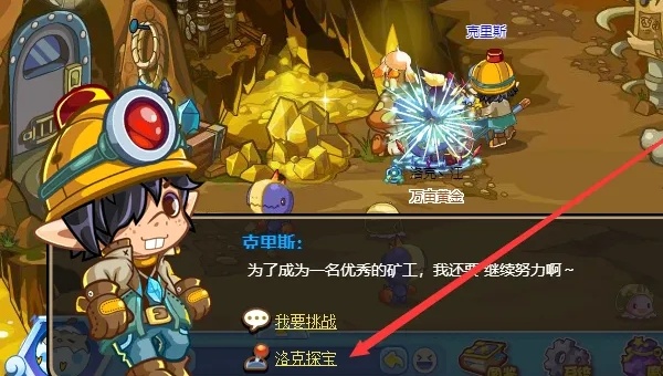 玩家先来到拉布朗金矿场,找到NPC克里斯对话参与洛克探宝活动。