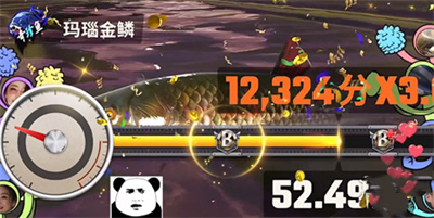 3、等到慢慢收回鱼线,就能顺利钓到玛瑙金鳞,得到丰厚的积分。