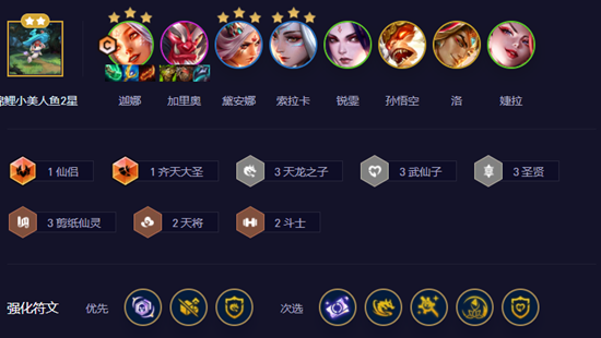 风女单独3的快,佐伊妮蔻不追,上人口换成加里奥;风女皎月都能3的,留着佐伊7级看牌多不多追一下,也可以直接上人口补悟空和洛,或者补神谕和圣贤