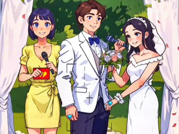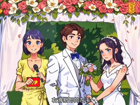 最后把左边女生手里的戒指给新娘,再让左边女生放开新浪即可通关。