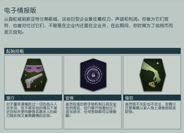 开局能够获得潜行和偷窃这两样重要技能,对我们前期摸东西收获资源很有帮助。