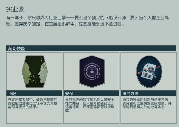 如果我们想尽量避免战斗,那么实业家绝对是不二之选,说服技能能有效通过对话触发完成任务。
