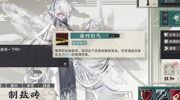 被动连竹引气,可以在使用职业技能后,在下次普通攻击的时候触发对敌方造成60%的连击伤害。