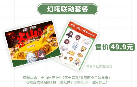 在“棒约翰PapaJohns”品牌抖音账号直播间及抖音线上门店优惠团购中购买【得幻塔联名贴纸】12"大装火山比萨(芝士蒜香酱/番茄酱)2选1(幻塔联名款)抖音卡券,并到店完成核销,畅享美味同时还可获赠限定联动贴纸*1。