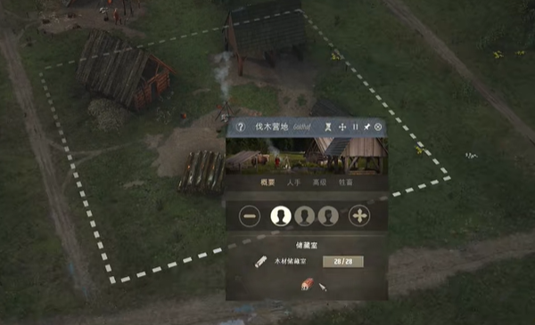 1、在需要清理的树木附近建造一间伐木营地,设置伐木区域。