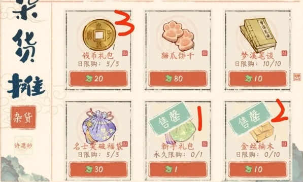 2、在许愿杂货摊中也能找到照水亭图纸、金丝楠木和体力等珍贵资源。