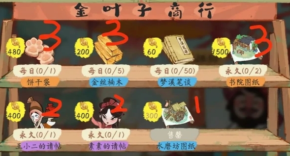 1、强烈推荐您优先购买水磨坊图纸及请帖,它们将有助于提升建筑繁荣指数。