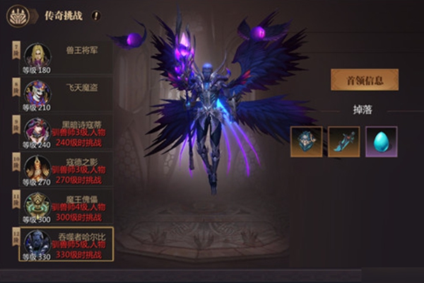 3、低等级时传奇挑战的BOSS等级间隔30级,高等级后等级跨度变为20。