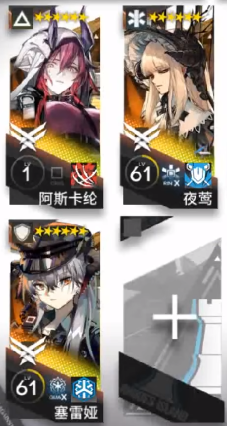 阿斯卡纶(精二1级)、塞雷娅(精二60级)、夜莺(精二60级)