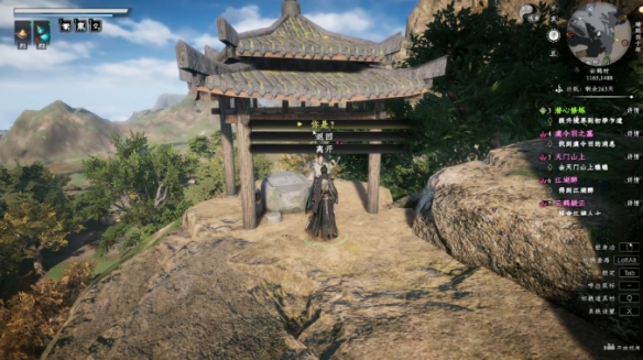 1、首先玩家需要来到(1166,1489)处就能够找到天门山的小亭子,位置就在村长家后。