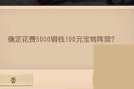 4、最后,阵营转移所需的成本较高,需要花费5000铜钱和100元宝才可完成。