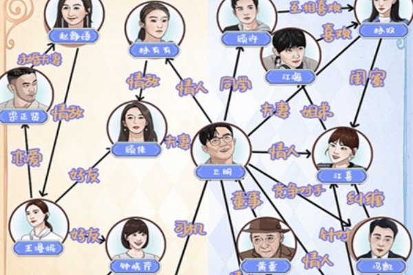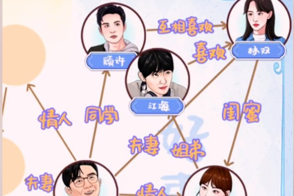 就挺秃然的渣男关系网是游戏中是一个图文的关卡,其中许幻山就是顾明,他还真的很渣不管在哪里都有情人,玩家需要把每个人和他的关系都还原出来才能通关。