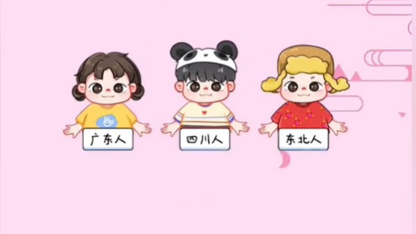 动动大脑瓜喂饱那个人这关需要选择正确的食物把来自三个不同地区的人喂饱才能通关,其中四川人喜欢吃辣给她喂辣味十足的食物即可,而广东人则要喂清淡的食物。