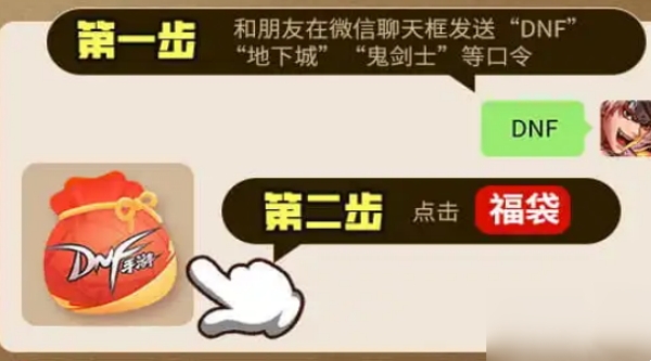 dnf手游聊天福袋获取方法首先需要玩家先进入微信,在和朋友或者是自己的对话框中输入限定的词语,输入后福袋就会出现了,需要注意福袋出现的时间较短。