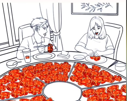 其中餐桌上面有121只螃蟹,玩家需要一个一个进行点击,系统会自动计数。