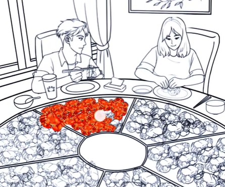 我是显眼包找螃蟹这关的玩法比较简单,玩家只要在场景中找出126只螃蟹就可以通关了,大部分螃蟹都在餐桌上面,把这些找完之后再到两个主角身上寻找剩下的即可通关。