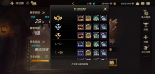 每个职业都会有一个排名,在赛季结束后,会根据玩家当前的排名发放奖励。