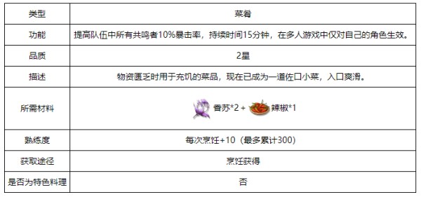 食用之后可以提升角色的暴击率,效果可以达到10%左右。