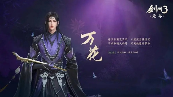 1、万花是一款门派职业,技能有花间游、离经易道、养心决、太素九针。