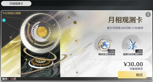 2、玩家可以充值大月卡赠送恒星烙印系列,一共有五件玩家可以选择飞景。