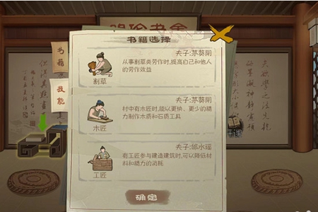 1、当您成功建立学堂之后,点击左侧栏目,即可发现书籍与技能。随后招聘一位夫子,便可开始传授技艺。