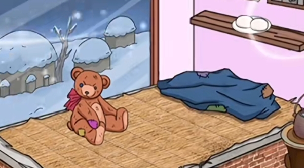 最后只需要把床上的凉席变成豪华软垫,把脏兮兮的小熊更换成新的即可。