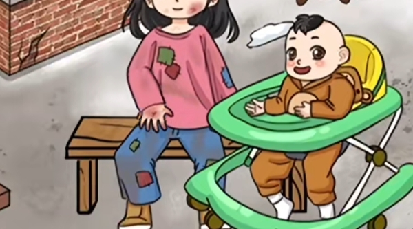 脑洞天花板姐妹情深首先先把左下角的钱拖到摇篮中,然后再把钱拖到两个孩子的身上,接着把钱拖到破旧不堪的凉席上,最后把道具用完就可以通关了。