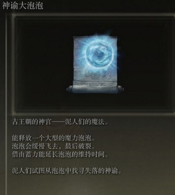 艾尔登法环神谕大泡泡在希芙拉河上方的神殿内,我们先来到信仰者的森林一直往石柱走传动到河上方,就可以找到神殿进入之后击杀出现的乌龟就可以得到泡泡魔法。